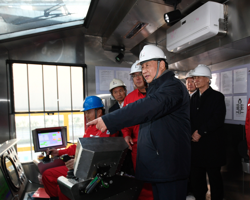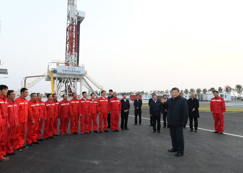離開研究院,習(xí)近平來到位于東營市萊州灣的勝利油田萊113區(qū)塊,了解二氧化碳捕集、利用與封存技術(shù)研發(fā)應(yīng)用情況。他登上二層鉆井平臺(tái),察看鉆井自動(dòng)化設(shè)備,走進(jìn)操作室,同正在作業(yè)的工人親切交流。今年是勝利油田發(fā)現(xiàn)60周年。習(xí)近平代表黨中央向?yàn)槲覈茉词聵I(yè)作出貢獻(xiàn)的石油工作者們表示崇高敬意。習(xí)近平叮囑大家繼承和發(fā)揚(yáng)老一輩石油人的革命精神和優(yōu)良傳統(tǒng),始終保持石油人的紅色底蘊(yùn)和戰(zhàn)斗情懷,為社會(huì)主義現(xiàn)代化建設(shè)事業(yè)作出更大貢獻(xiàn)。